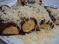 - Ambil pisang raja yang sudah dikukus dan letakkan pada selembar dadar. Taburi dengan sedikit keju parut. Gulung dadar, siram susu kental manis dan beri keju yang sudah diserut.